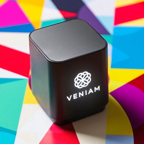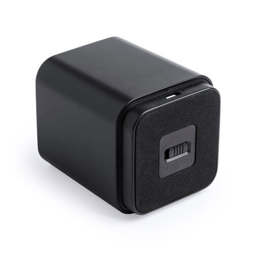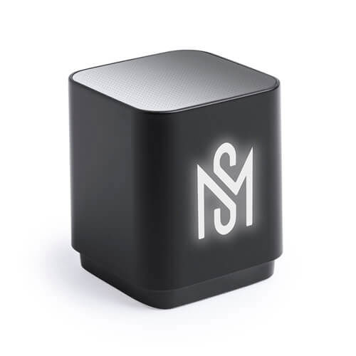 Parlante con conexión Bluetooth, luz led interior y cuerpo especialmente diseñado para marcaje en láser, iluminando así el logotipo. Con 3W de potencia y función manos libres. Recargable mediante cable USB -incluido- y presentado en una atractiva caja de diseño.