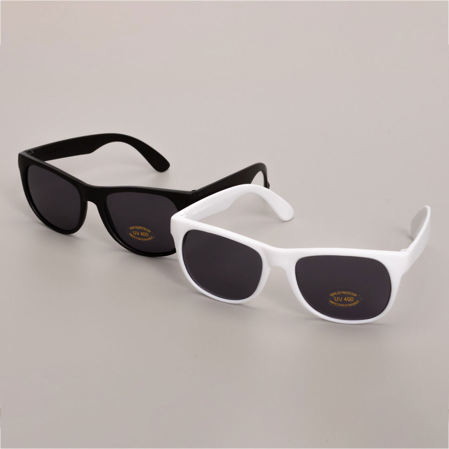 Anteojos Lentes de Sol modelo «SUNNY». Estuctura de plástico PP con lentes de PVC ahumado con protección solar certificada UV400. Presentación en bolsa de polipropileno transparente. Un producto ideal para regalo promocional de verano.