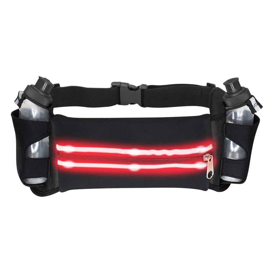 El banano LED de hidratación te ayuda a mantener el agua siempre a la mano para que te hidrates mientras haces deporte. Incluye 2 bandas de LED brillante para mayor visibilidad, bolsillo frontal con cremallera para guardar objetos pequeños, como llaves o billetera y 2 botellas tipo caramayola. 3 funciones de luz: fija, intermitente rápida e intermitente lenta.