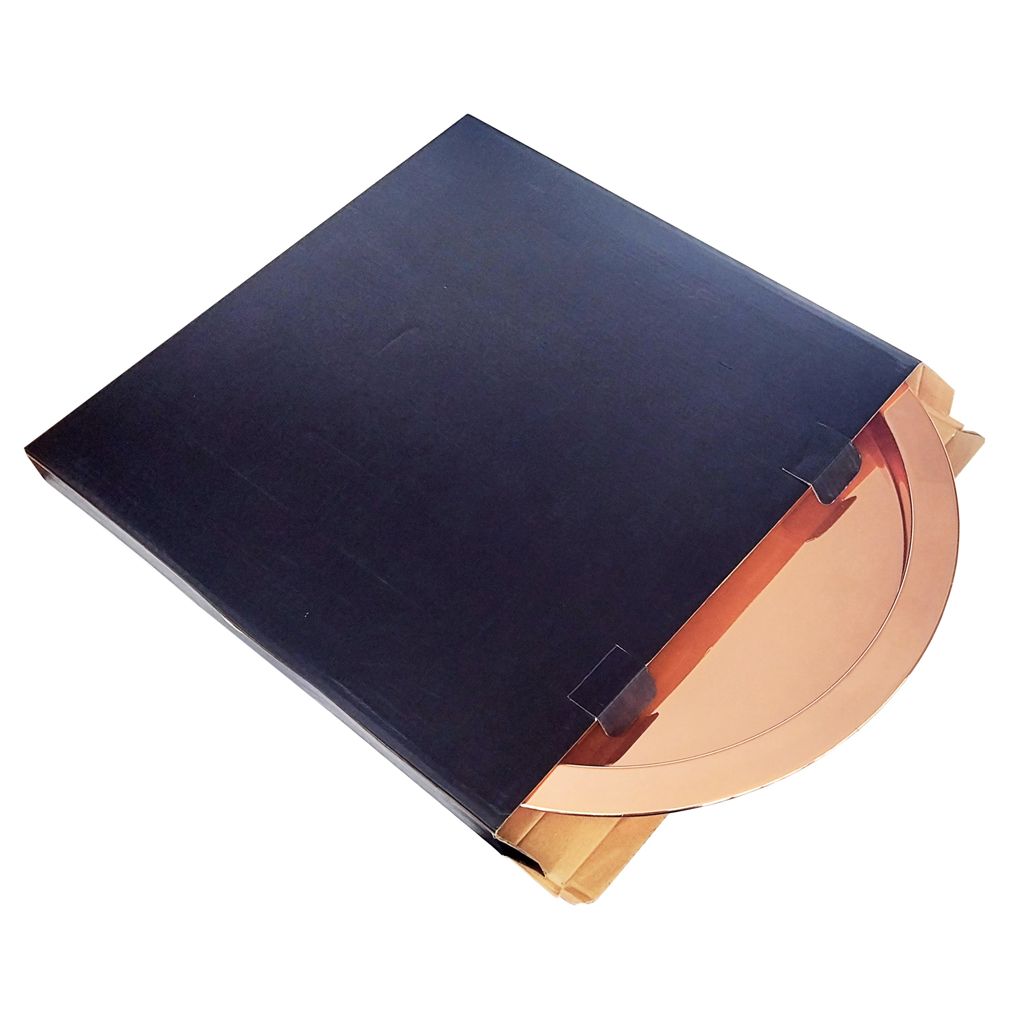 Bandeja de acero inoxidable electro-plateada en cobre. Presentación en caja de regalo negra.