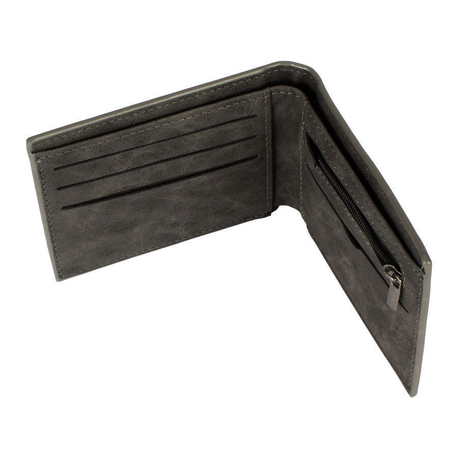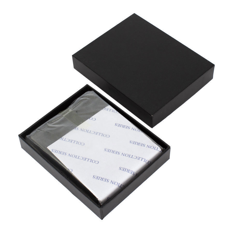 Billetera de eco-cuero, modelo «GEORGIA». Contiene 6 compartimentos interiores, uno de ellos con cremallera. Presentación en bolsa frozen y caja de cartón forrado negro opaco.