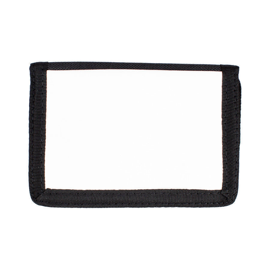 Billetera de nylon y poliéster color negro, con ventana de nylon blanco de 10.2 x 6.8 cm, para Sublimación. Presentación en bolsa PP translúcido.