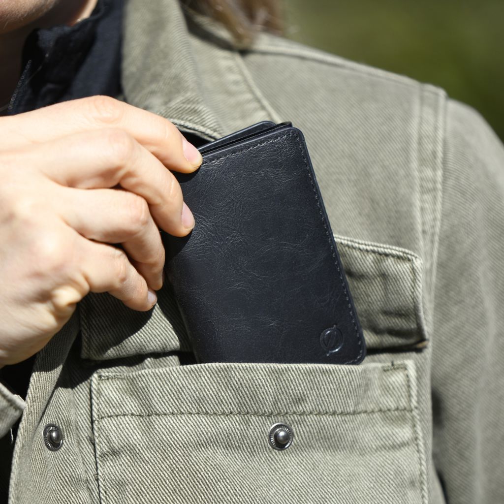 La billetera Singapur de BØLG CONCEPT va a ser tu mejor compañera de viajes y tu partner del día a día. Su diseño minimalista y delgado permiten llevarla a todos lados de manera cómoda y segura. Cuenta con un botón de fácil acceso que te permite ver y usar tus tarjetas de manera inmediata. Su tecnología RFID evita robos mediante clonación. Adicionalmente cuenta con compartimientos interiores para guardar otros documentos como Cédula de Identidad o Carnet de Conducir ademas de un espacio especial para guardar billetes.