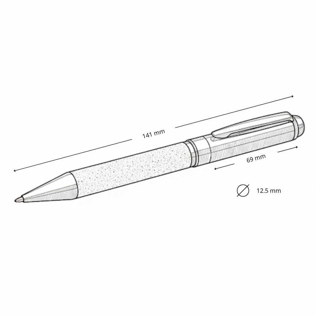 MENDOZA es el equilibrio perfecto entre elegancia atemporal y compromiso sostenible. Su cuerpo metálico con detalles cromados se envuelve en cuero reciclado (PU), aportando una textura sofisticada y una segunda vida a materiales que merecen ser reutilizados. De acción giratoria y acabado en tono marrón, este bolígrafo puede llevar tu logotipo grabado con precisión láser, incluyendo el distintivo R-PU, símbolo de su origen reciclado. MENDOZA es ideal para marcas que valoran la durabilidad, el diseño y el mensaje que transmiten al escribir.