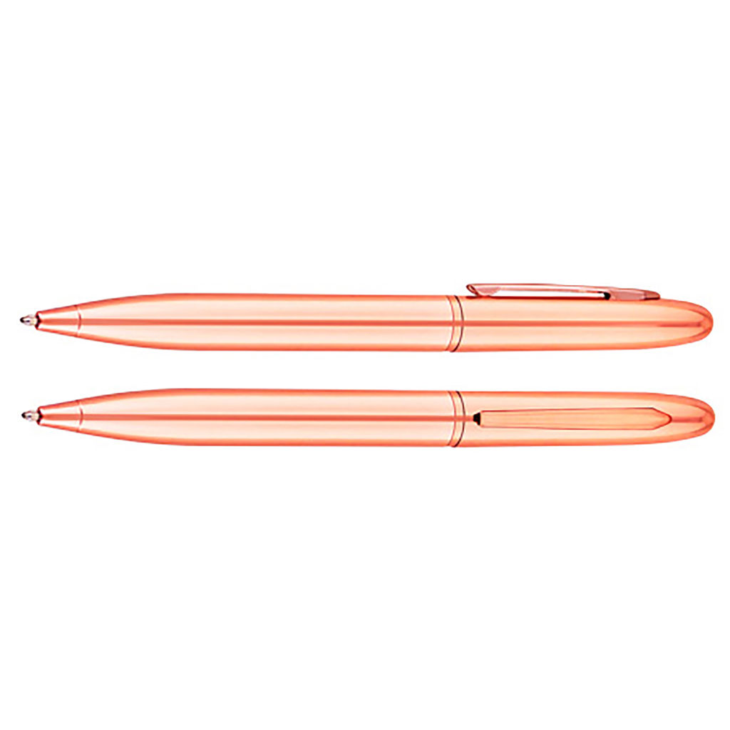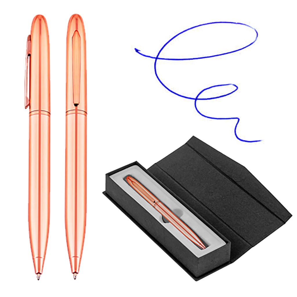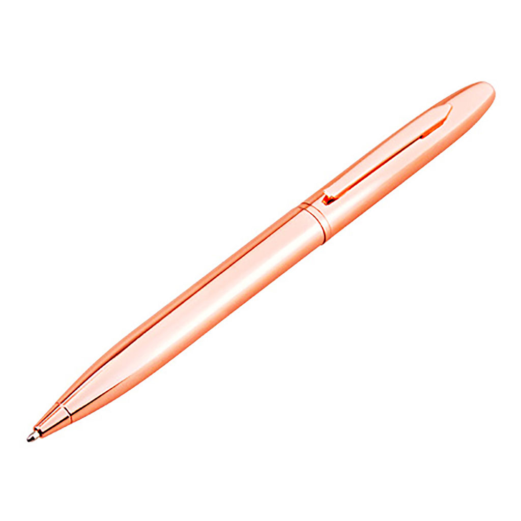 Bolígrafo metálico electro plateado en color cobre de finas terminaciones.