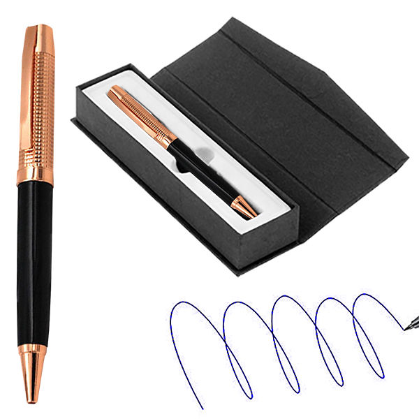 Bolígrafo metálico electro plateado en color cobre de finas terminaciones.