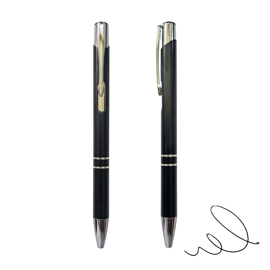 Bolígrafo Metálico negro con detalles plateados. Presentación en bolsa plástica.