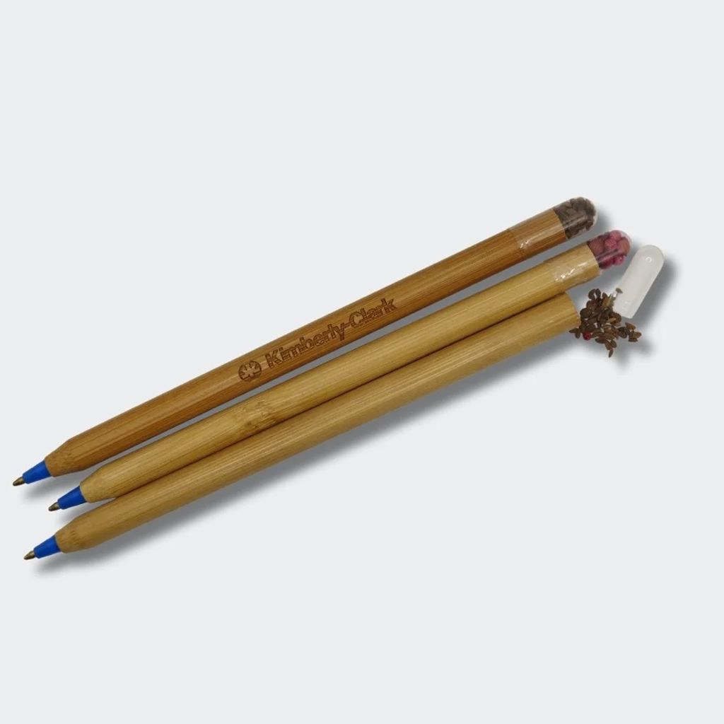 ✔ 1 bolígrafo de cuerpo de bambú natural con tinta negra, grabado láser con el nombre de la semilla que contiene (0,8 x 15,5 cm)