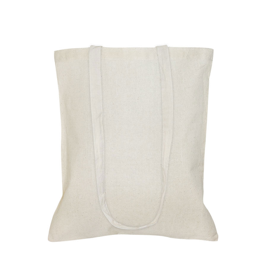Bolsa 100% Algodón natural de 130g/m2, modelo «India». Manillas de Algodón natural de 80 x 2.5 cm. aprox. c/u.