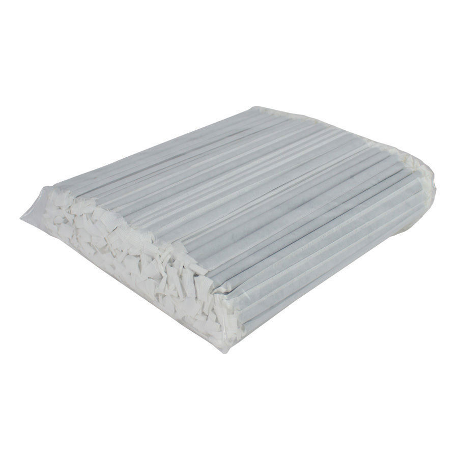 Bolsa con 200 Bombillas o Pajitas de Cartón de 19.6 cm. de largo x 0.6 cm. de diámetro c/bombilla. Cada bombilla sellada en forma individual, dentro de una bolsita de papel blanco.