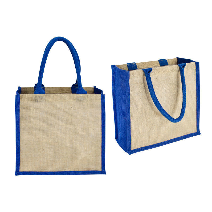 Bolsa de Yute modelo «Rain Forest», con recubrimiento laminado interior. Fuelle de yute teñido color. Manillas de cordón acolchado de yute teñido color de 45 x 1.5 cm. aprox. c/u.