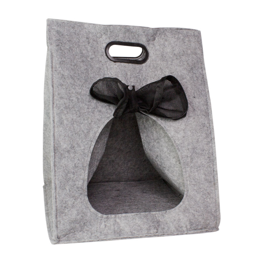Bolso de Fieltro para transportar mascotas pequeñas (gatos, perros de razas pequeñas). Tela Fieltro Poliéster 450g/m2. Capacidad 40 litros, tamaño 40 x 52 x 40 cm. Incluye asas reforzadas de plástico negro, 2 broches de cierre superior, cubierta rígida reforzada para la base del bolso y ventana de malla negra removible, con cierre-eclair .