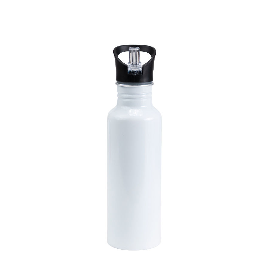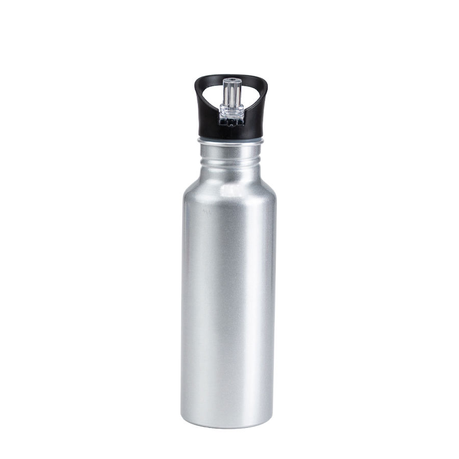 Sport Bottle botella metálica de Aluminio modelo «BUZZ», con tapa rosca de plástico PP, dosificador retraíble con boquilla translúcida y anillo de silicona, anti-derrame. Producto BPA FREE, para el contacto con líquidos y alimentos. Capacidad 750ml. Presentación en bolsa PP + caja de regalo de cartón lacado color plata. IMPORTANTE: esta botella NO es térmica, apta sólo para líquidos fríos.