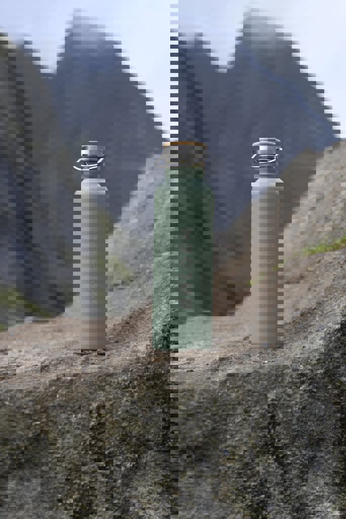 Producida con 50% de acero inoxidable reciclado, BPA Free y tapa de Bamb√∫. Esta botella es durable, resistente y segura para las personas y el medio ambiente.