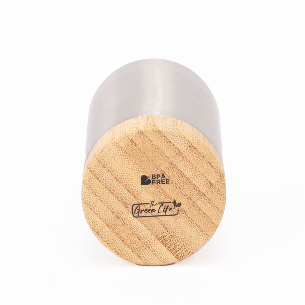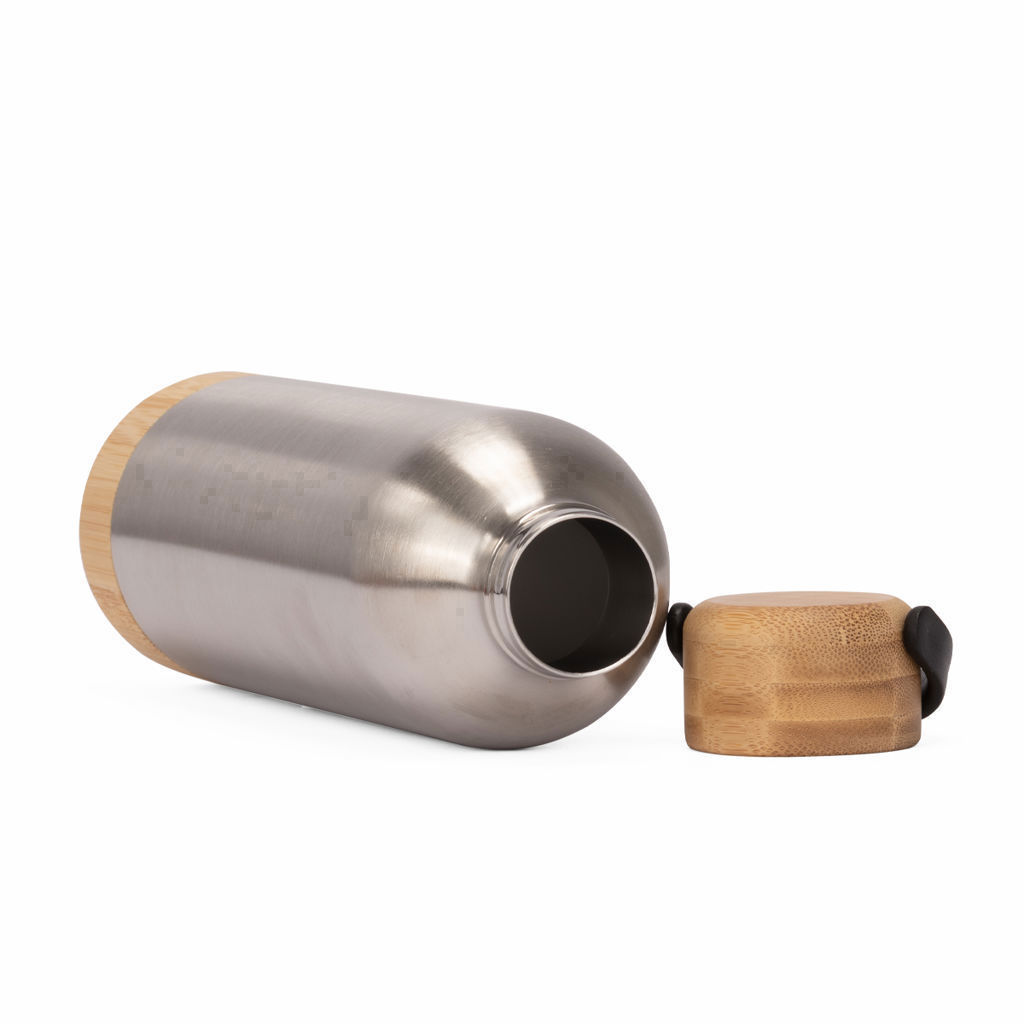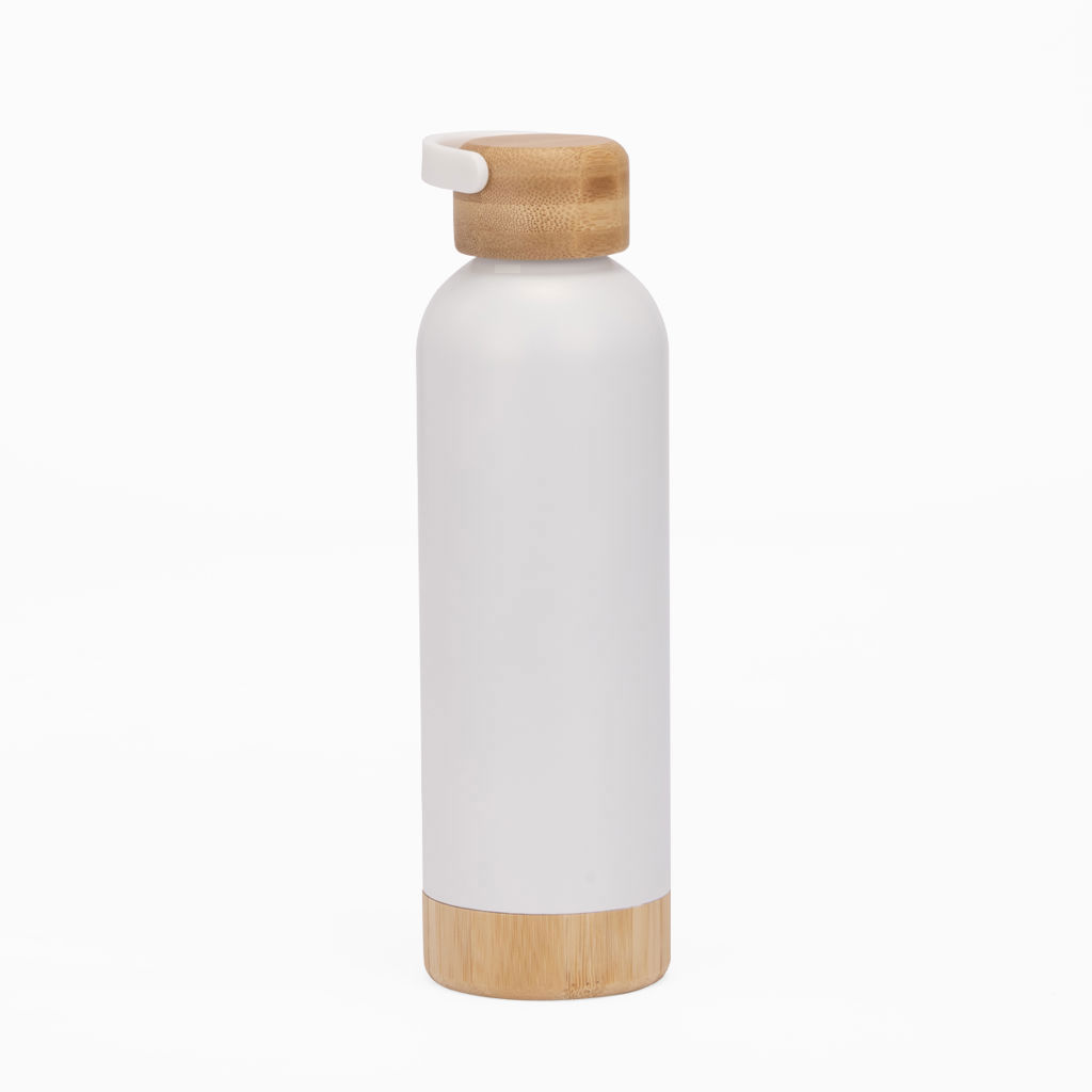 SIBERIA es una botella térmica de acero inoxidable reciclado, diseñada para acompañarte en cualquier clima con estilo y responsabilidad. Su capacidad de 550 ml y su aislamiento de doble pared mantienen la temperatura de tus bebidas por más tiempo. El cuerpo plateado se complementa con una elegante manga de bambú, aportando un detalle cálido y natural que contrasta con su acabado metálico. Su tapa de acero enroscable refuerza la seguridad y la estética. SIBERIA es ideal para marcas que buscan destacar con un mensaje de compromiso y diseño atemporal.