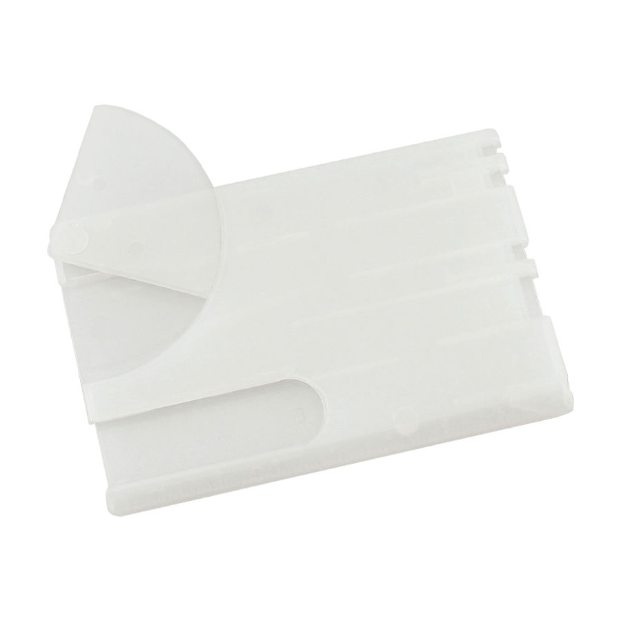Set de Manicure Card Tool 8-en-1. Tamaño tarjeta de crédito. Incluye Bolígrafo, Mondadientes, Tijeras, Pinzas, Lima de Uñas, Cuchillo, Alfiler y Regla de 3″.