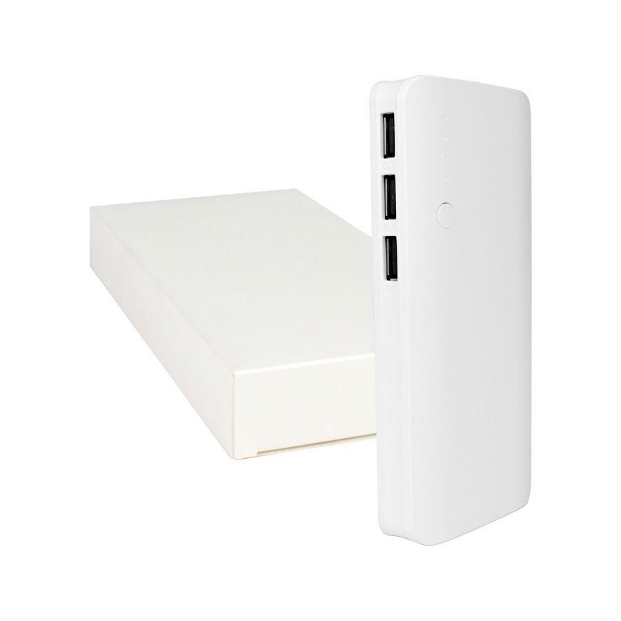 Cargador Power-Bank USB de 13000mAh, con indicador de carga y Linterna LED. Capacidad 13000mAh. Input: DC 5V 2A / Output: DC 5V 1A*3. Incluye set de cables de carga USB (Micro-USB / Lightning / Type C). Presentación en Estuche de cartulina blanca.