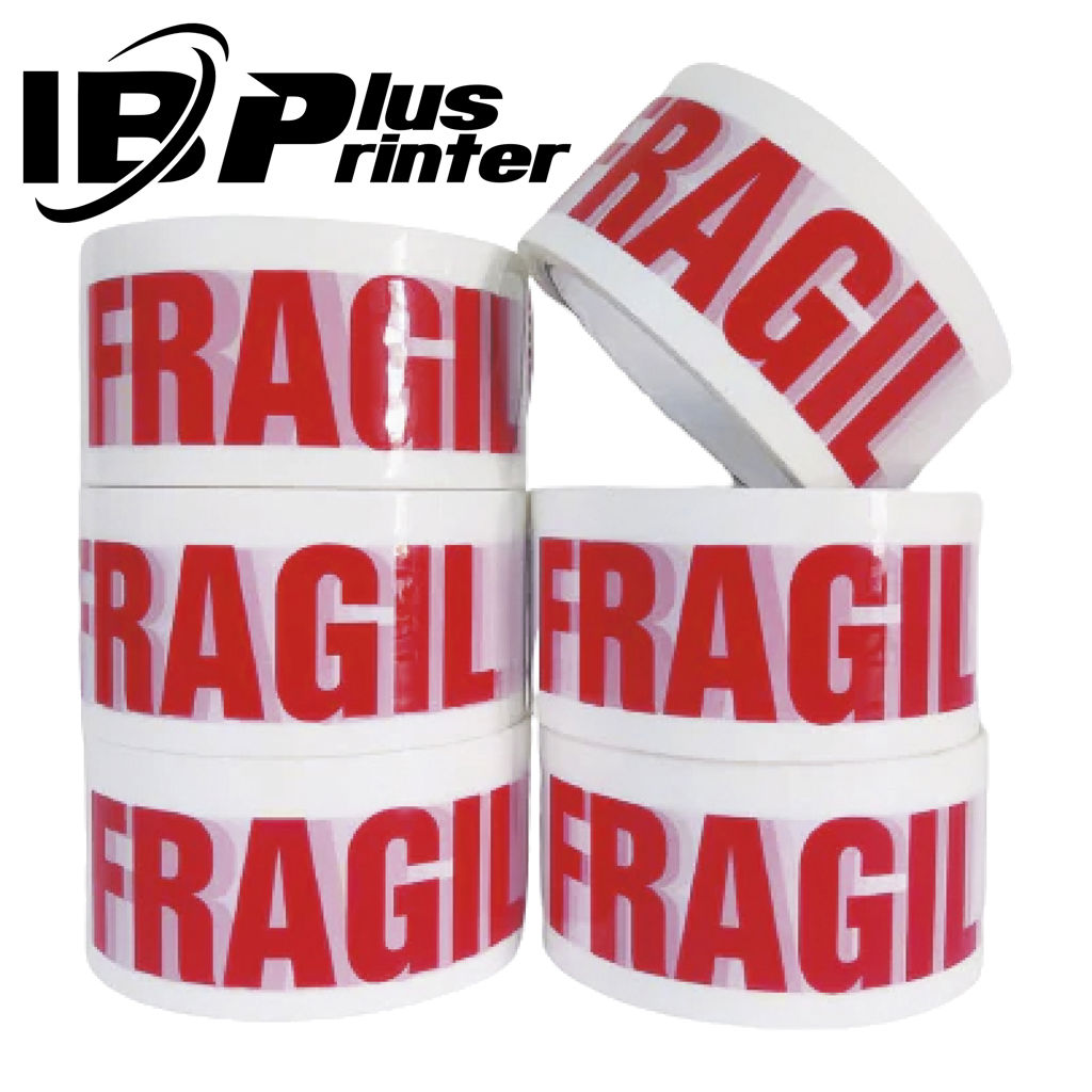 Cinta de embalaje blanca con impresión de FRAGIL en rojo.