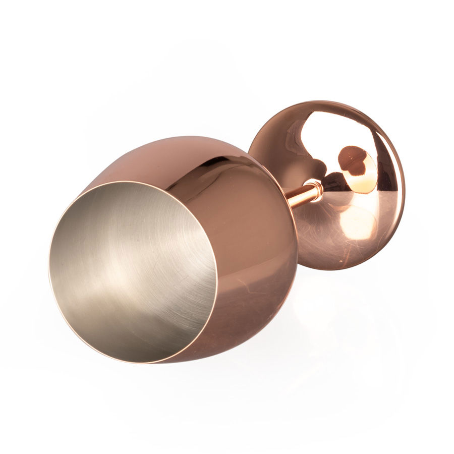 Copa de Acero inoxidable 304 SS de 0.6mm de espesor, con superficie lisa en color encobrizado. Producto BPA FREE, para el contacto con líquidos y alimentos. Capacidad 500ml. Presentación en bolsa PP + caja de regalo de cartón negro.