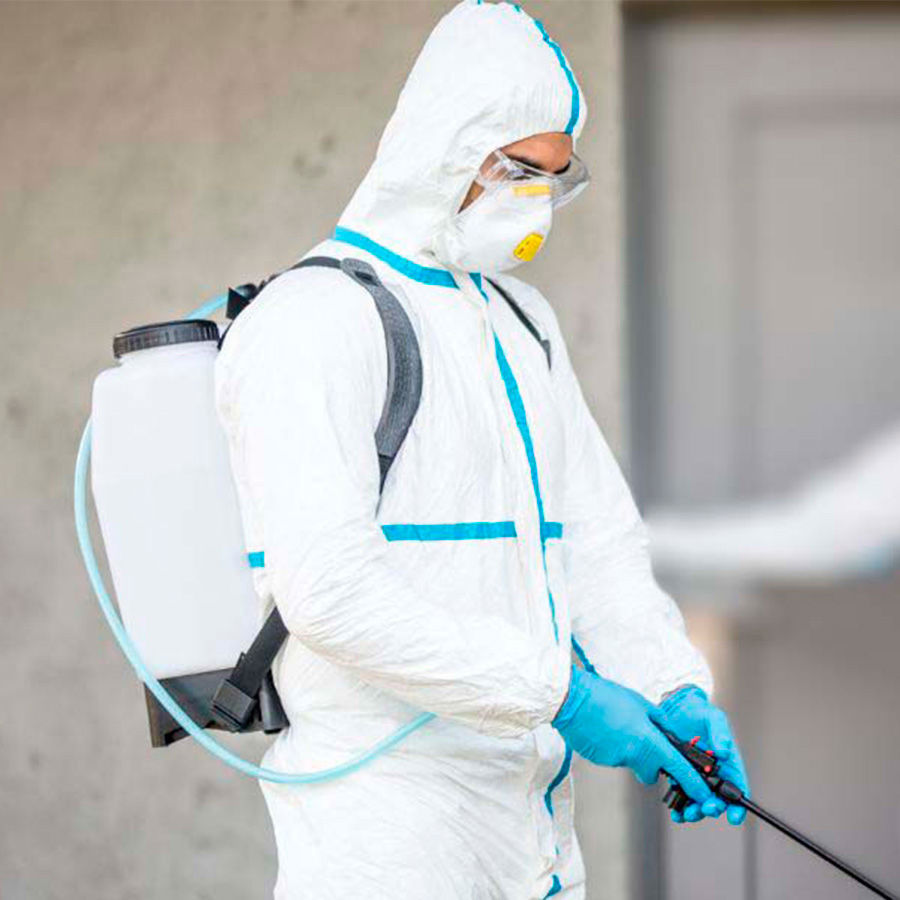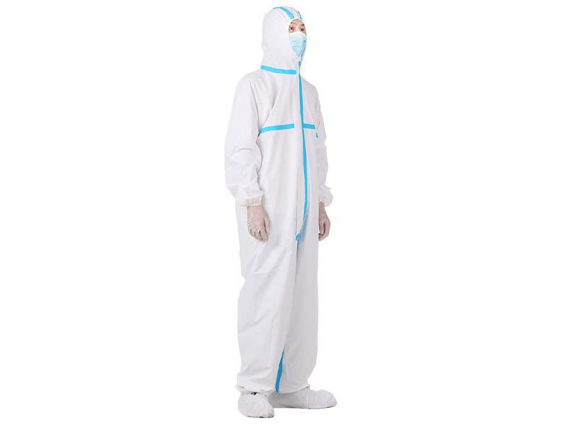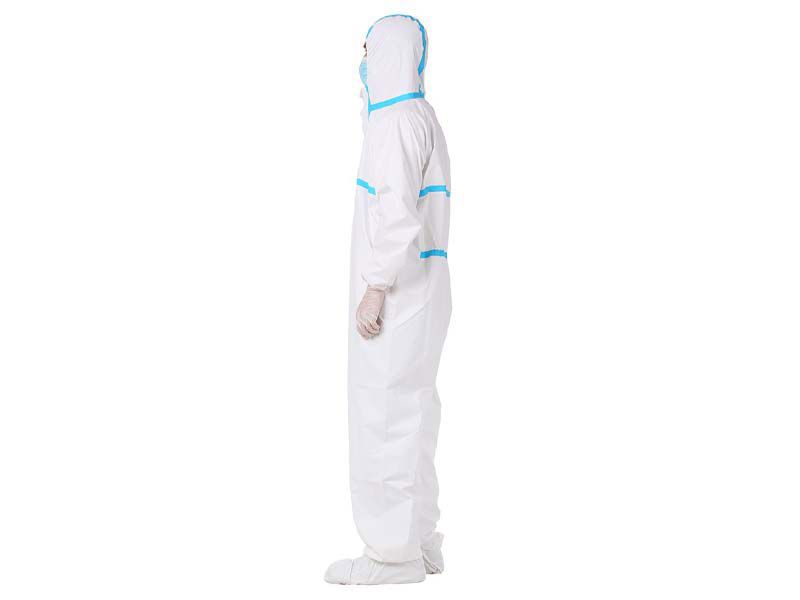 Coverall full protección, en tela gruesa nonwoven impermeable «Melt-Blown» de 120g/m2, para uso quirúrgico, transporte e industrial. Proporciona protección de fluídos líquidos y gaseosos, polvo en suspensión, sustancias dañinas, virus y bacterias. Se recomienda usar encima de la ropa de vestir.
