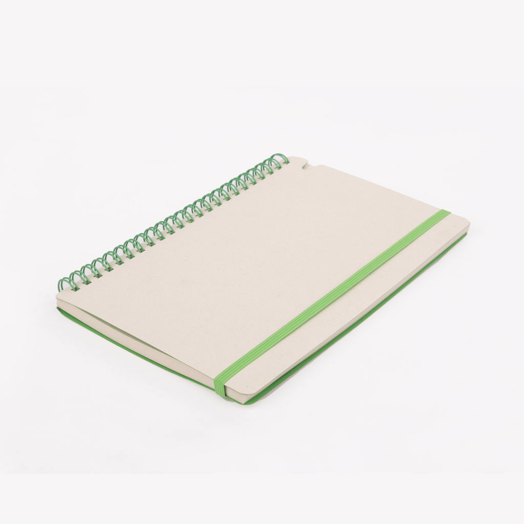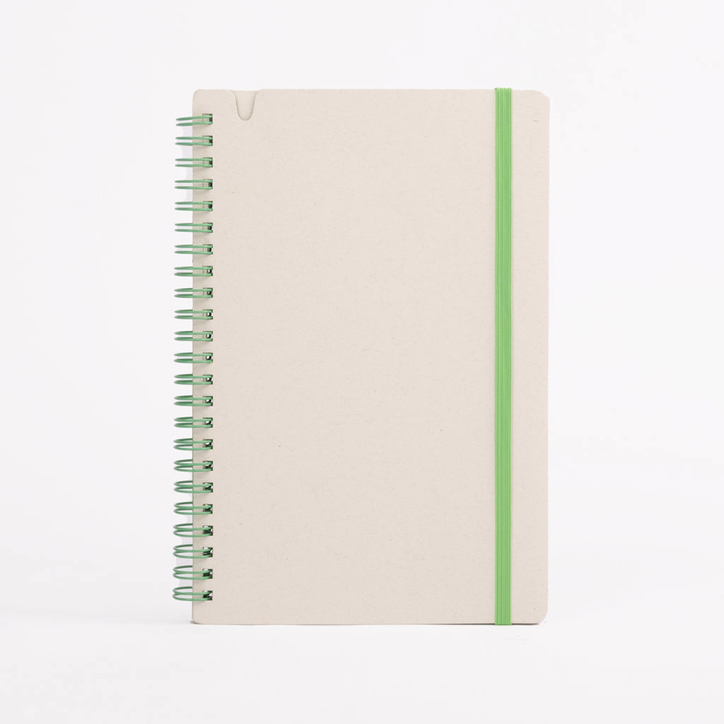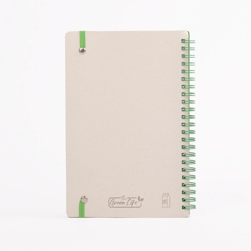 OSORNO es un cuaderno A5 de espiral lateral que convierte el reciclaje en funcionalidad. Con cubierta y páginas elaboradas a partir de cartón de envases lácteos recuperados, este cuaderno ofrece una alternativa consciente para el día a día. Sus 70 hojas de papel blanco con leve tono gris conservan la identidad del material reciclado, mientras la espiral y banda elástica en color verde refuerzan visualmente su espíritu ecológico. OSORNO es práctico, personalizable y perfecto para marcas que desean promover hábitos responsables a través de artículos útiles y con historia.