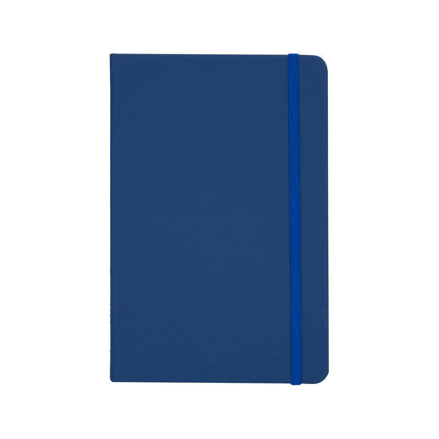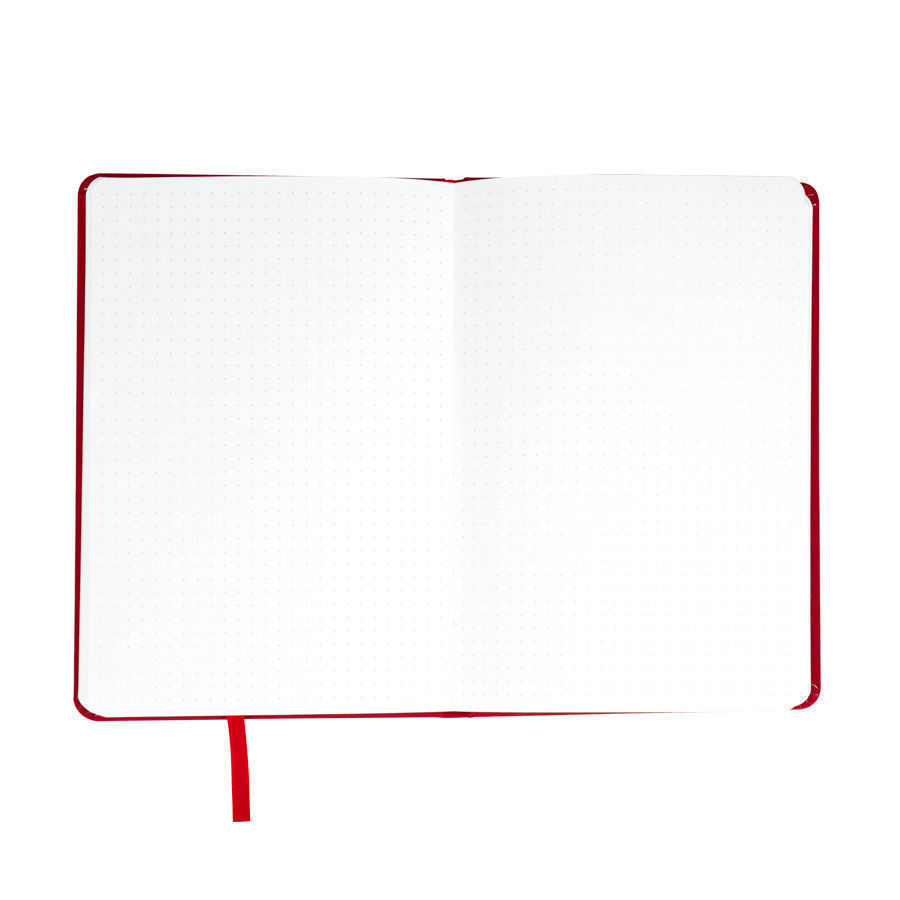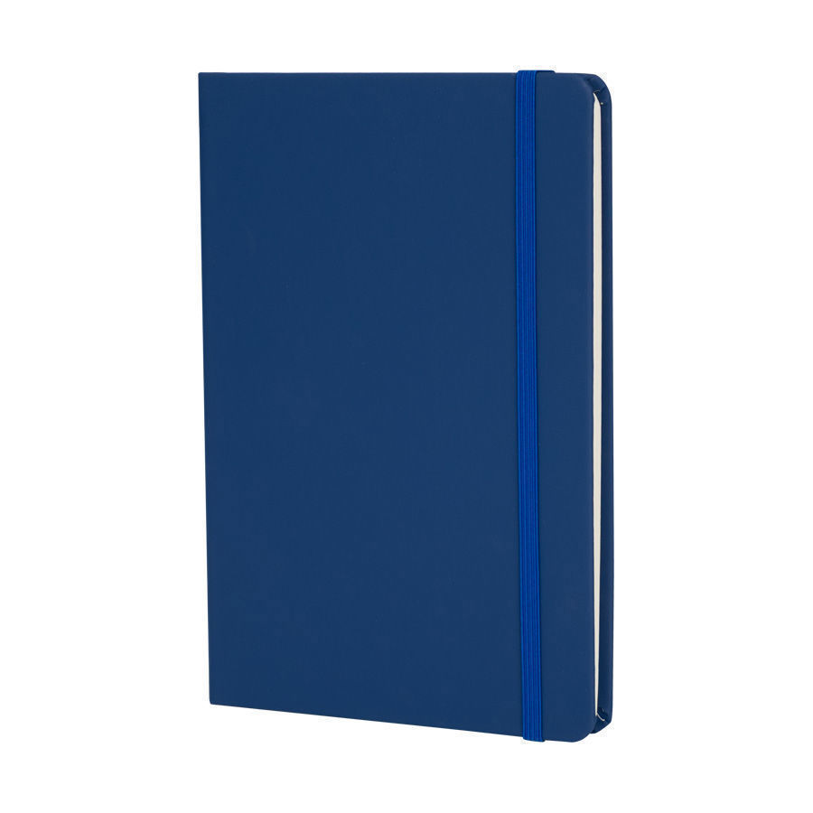 Deluxe cuaderno tamaño A5, con tapas duras de Eco-Cuero PU reciclado, engomado color mate, con 80 finas hojas color crema FSC IVORY PAPER de 80g/m2 con punteado «mental». Contiene elástico para cierre y banda separador de hojas al tono.