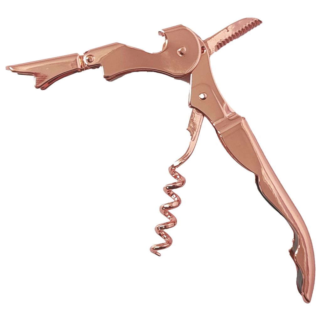 Descorchador de vinos electro plateado en color cobre.