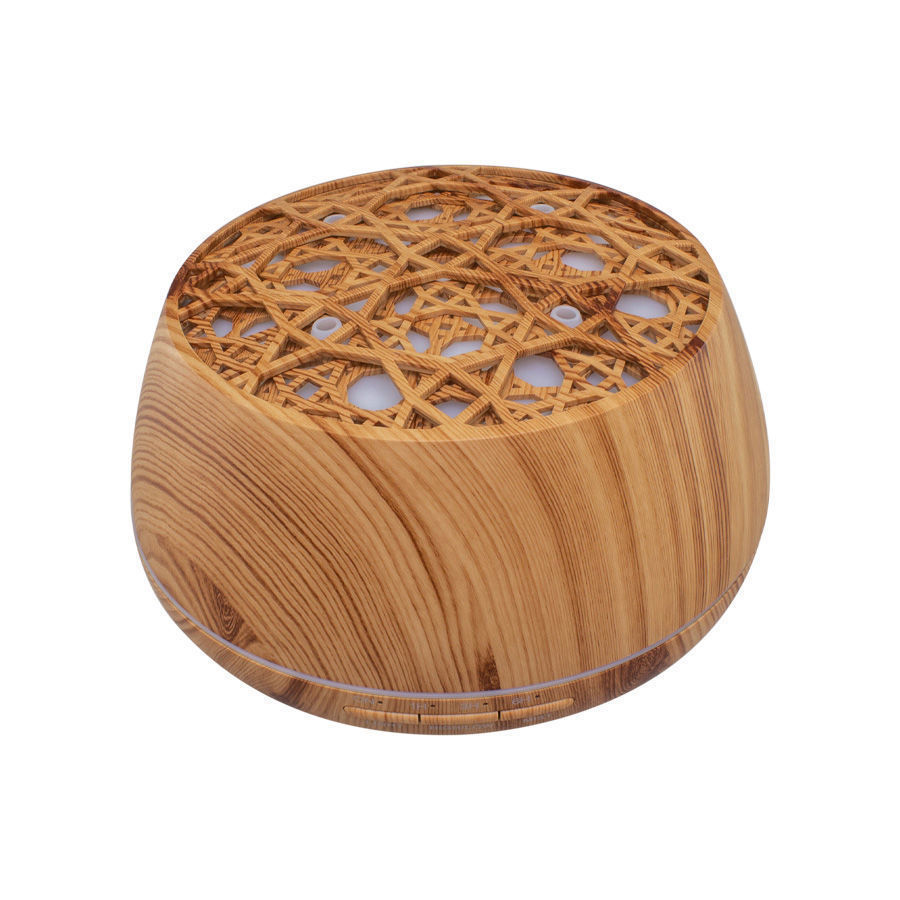 Difusor de Aroma con proyección de luz y parlantes. Contiene conexión Bluetooth para escuchar música desde el celular. También contiene APP para controlar colores e intensidad de aroma. Amplio contenido interno para líquido (hasta 300ml), diseño de proyección y colores variados de iluminación, atractivo formato en simil madera natural vetada. Un producto para disfrutar y relajarse, que no puede faltar en tu hogar u oficina.