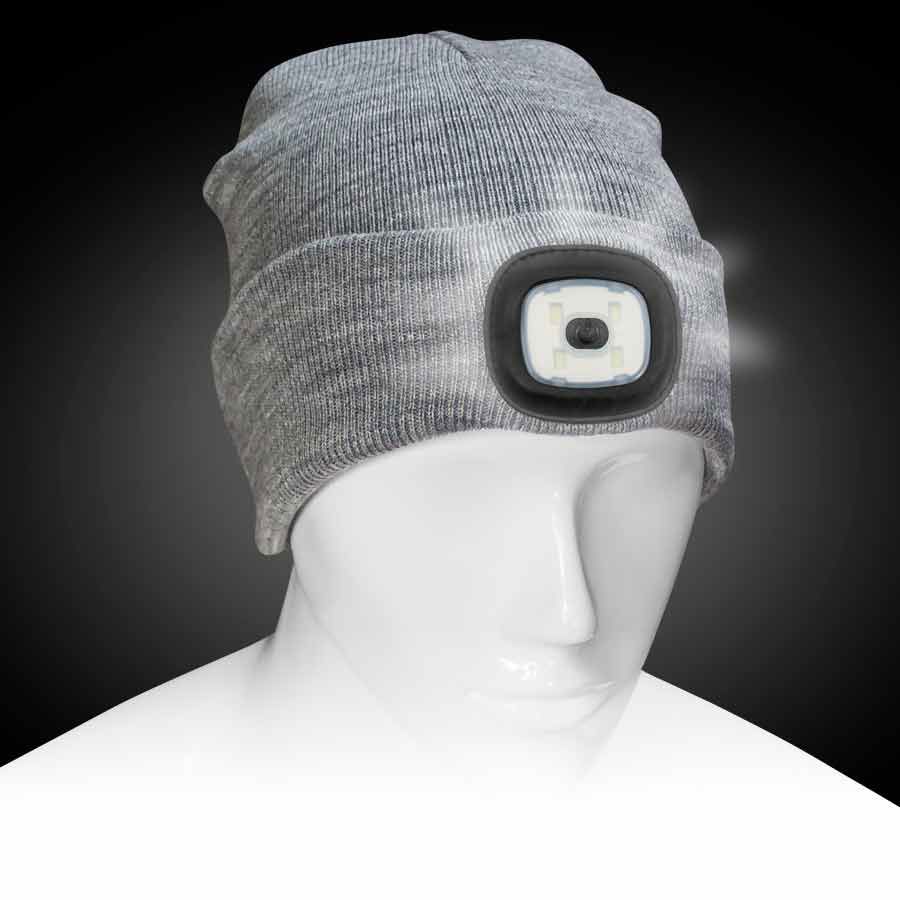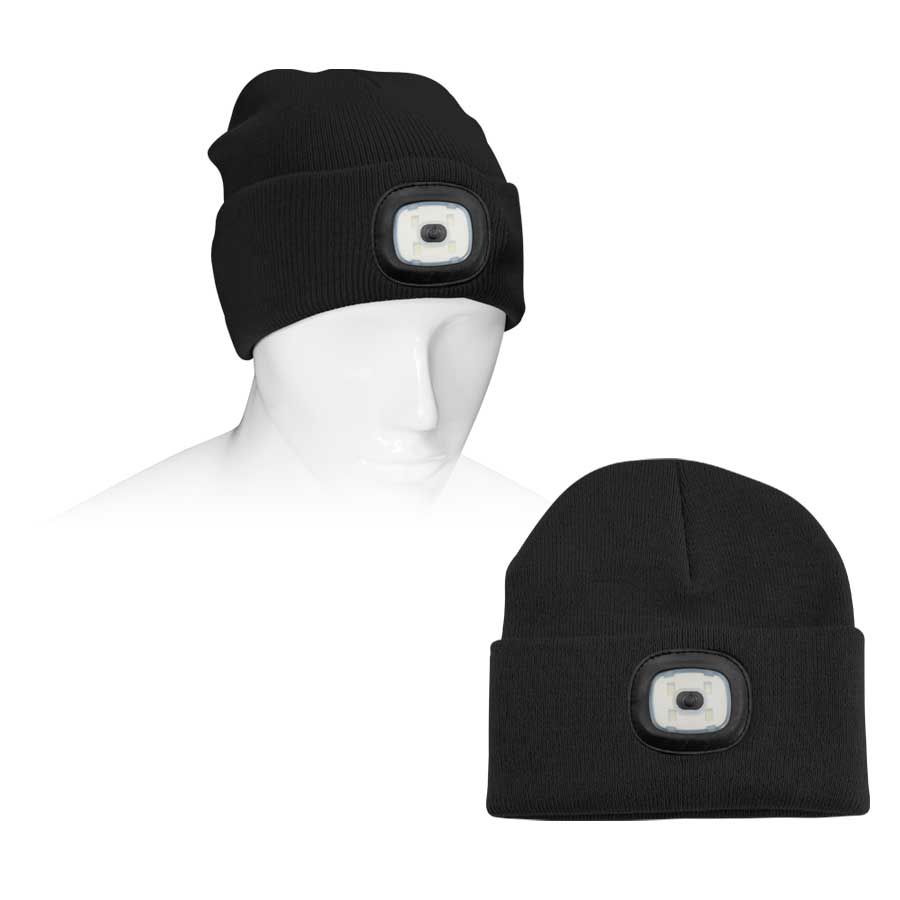 Gorro de Lana con linterna LED, 3 niveles de luz: Estroboscópica, Luz estándar, Luz potente.