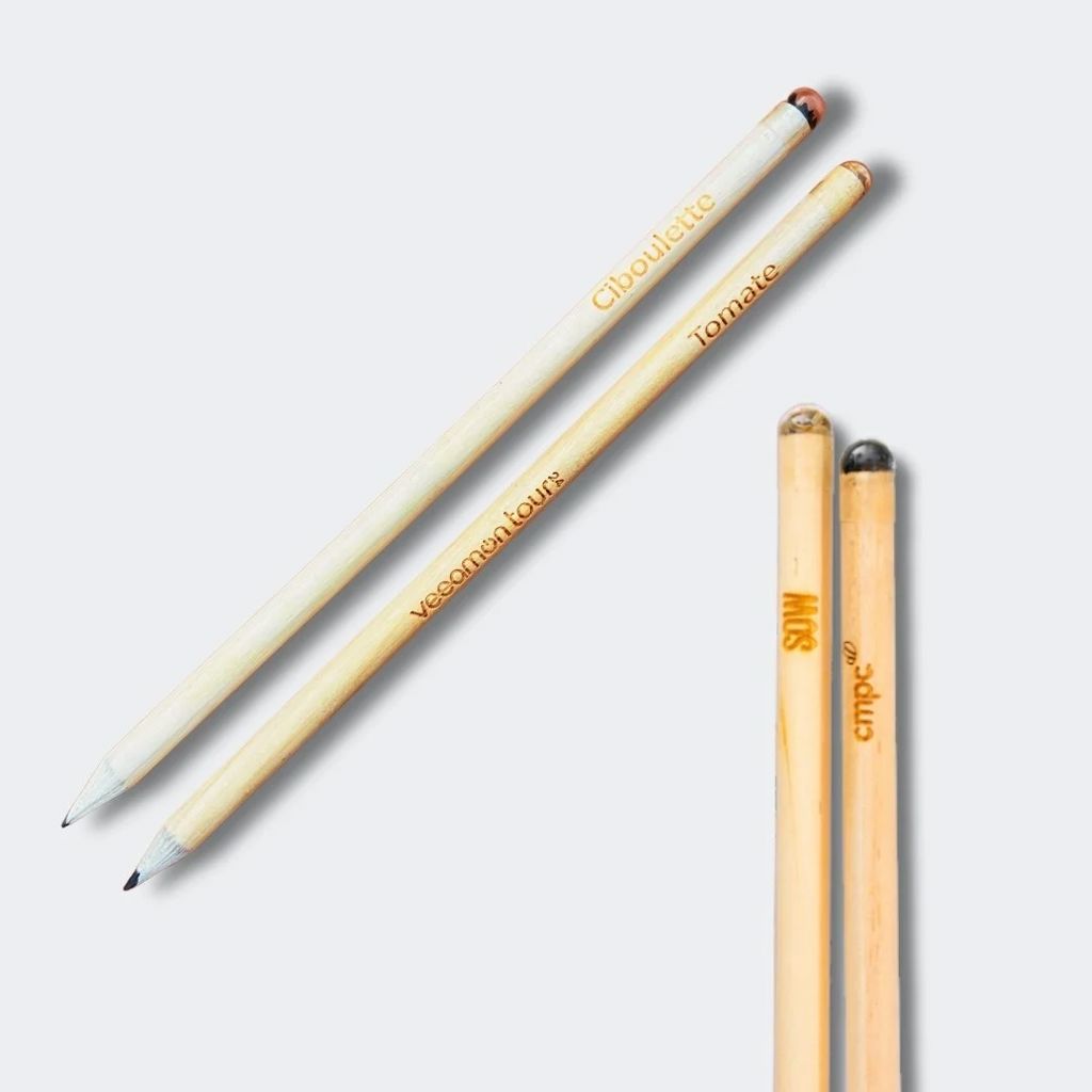 ✔ 1 lápiz grafito de madera natural grabado láser con el nombre de la semilla que contiene (17 x 0,7 cm)