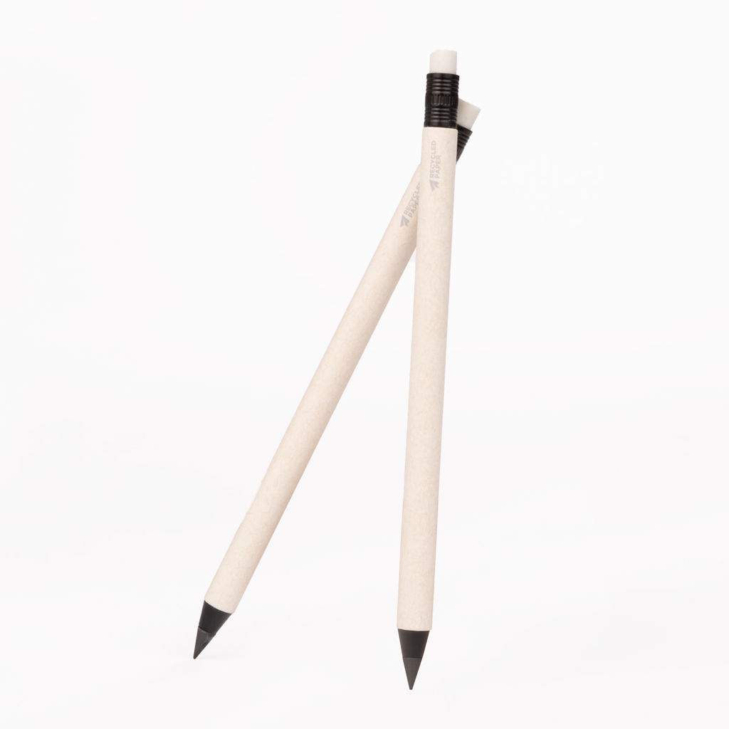 UBUD es el equilibrio perfecto entre innovación, sostenibilidad y simplicidad. Fabricado a partir de cartón reciclado de envases lácteos, este lápiz sin tinta con punta de grafeno ofrece una escritura suave y duradera que nunca necesita afilarse. Con diseño tipo push, goma de borrar integrada y un cuerpo listo para ser personalizado, UBUD es ideal para marcas que quieren marcar la diferencia con productos funcionales, originales y respetuosos con el planeta.