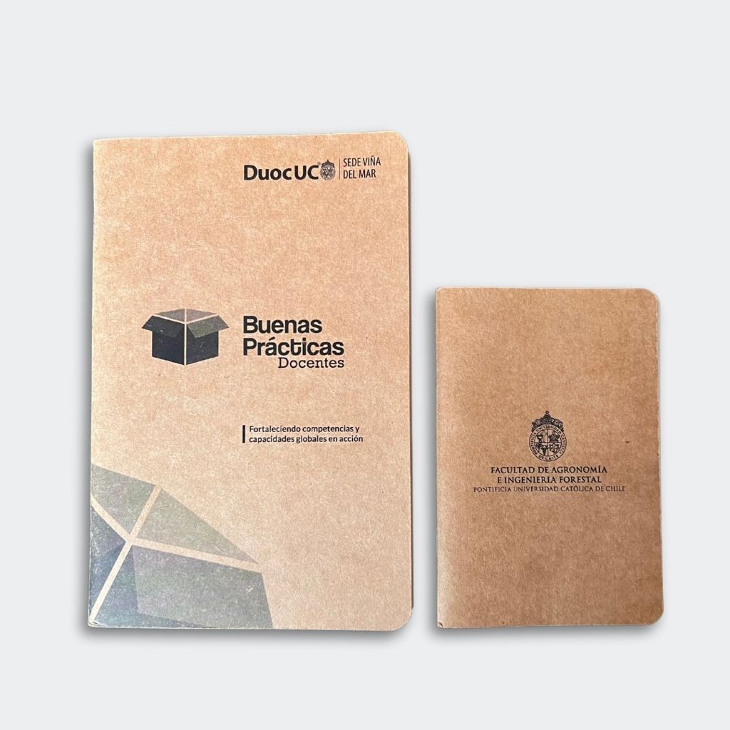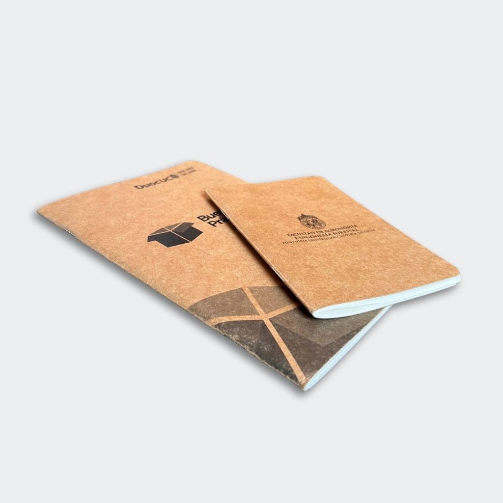 La libreta cuenta con impresión a color en la tapa, utilizando el diseño entregado por el cliente, permitiendo una personalización completa acorde a la identidad de cada marca 🎯.
