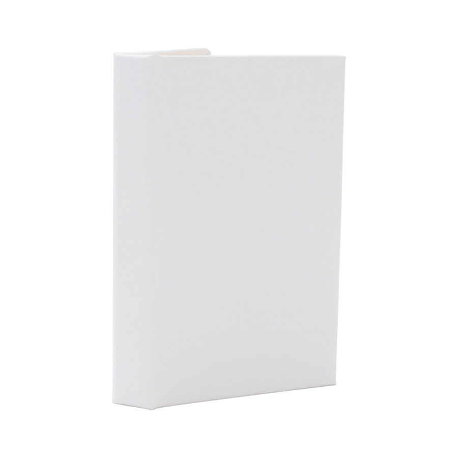Libretita Memo set Ecológico con tapa dura de cartón forrado blanco. Incluye 125 banderitas adhesivas de colores + 50 notas adhesivas amarillas.