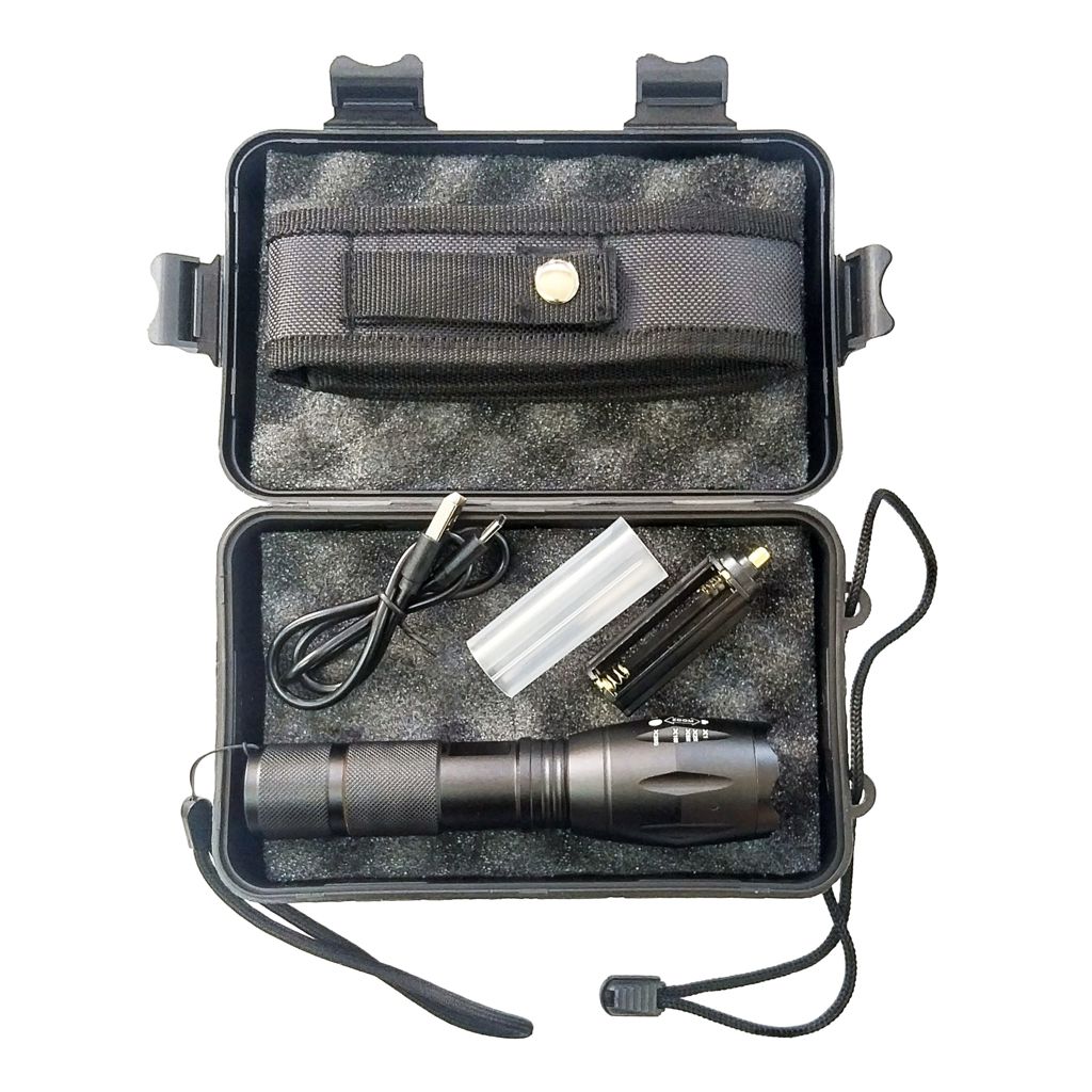 Linterna resistente al agua, tiene 5 modos: alto, medio, bajo, estroboscópico y alto brillo.