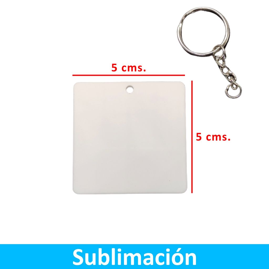 Pack de 50 llaveros en forma de cuadrada para subliminar ambos lados + 50 Argollas. Color Blanco.