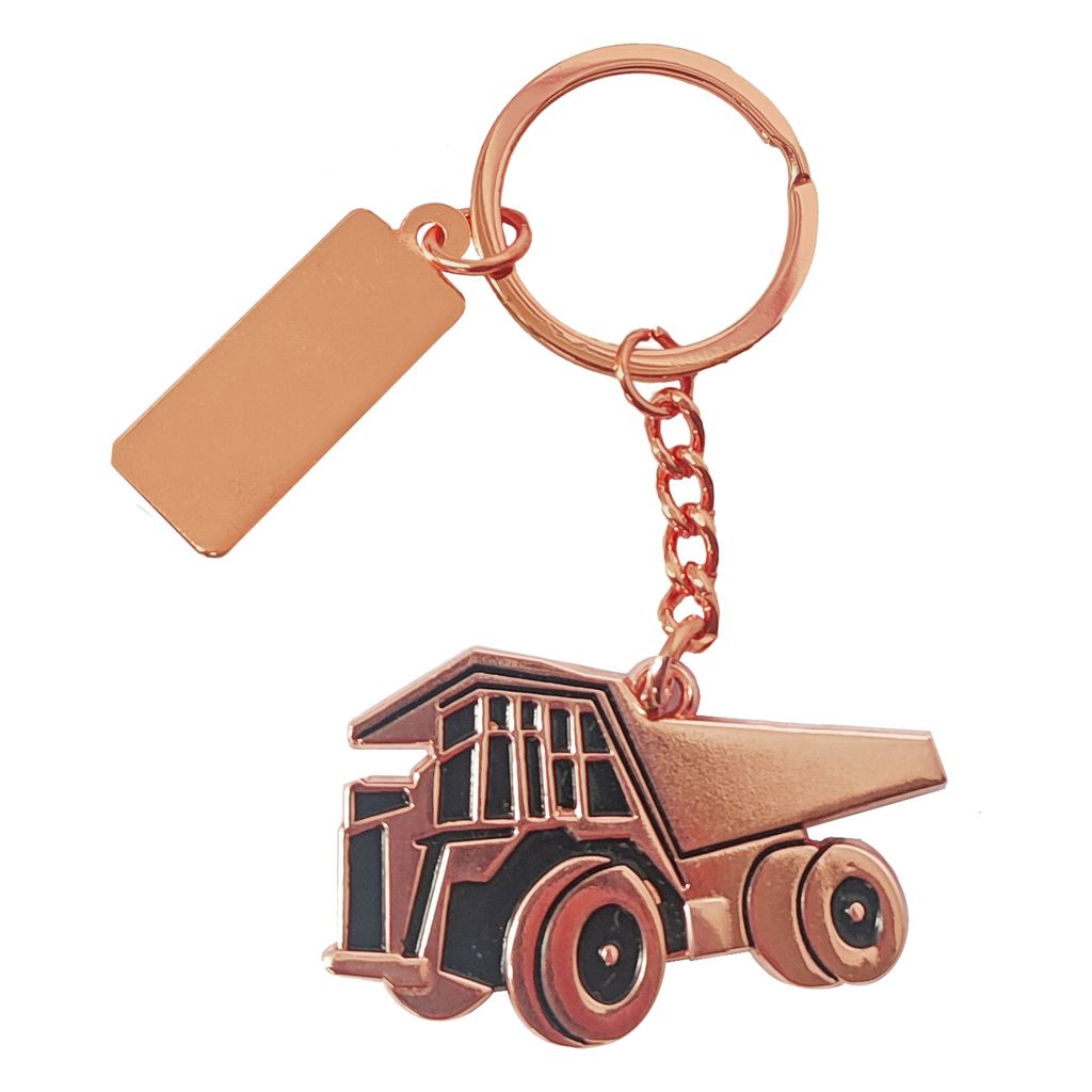 Llavero Camión Minero metálico electro plateado en color cobre.