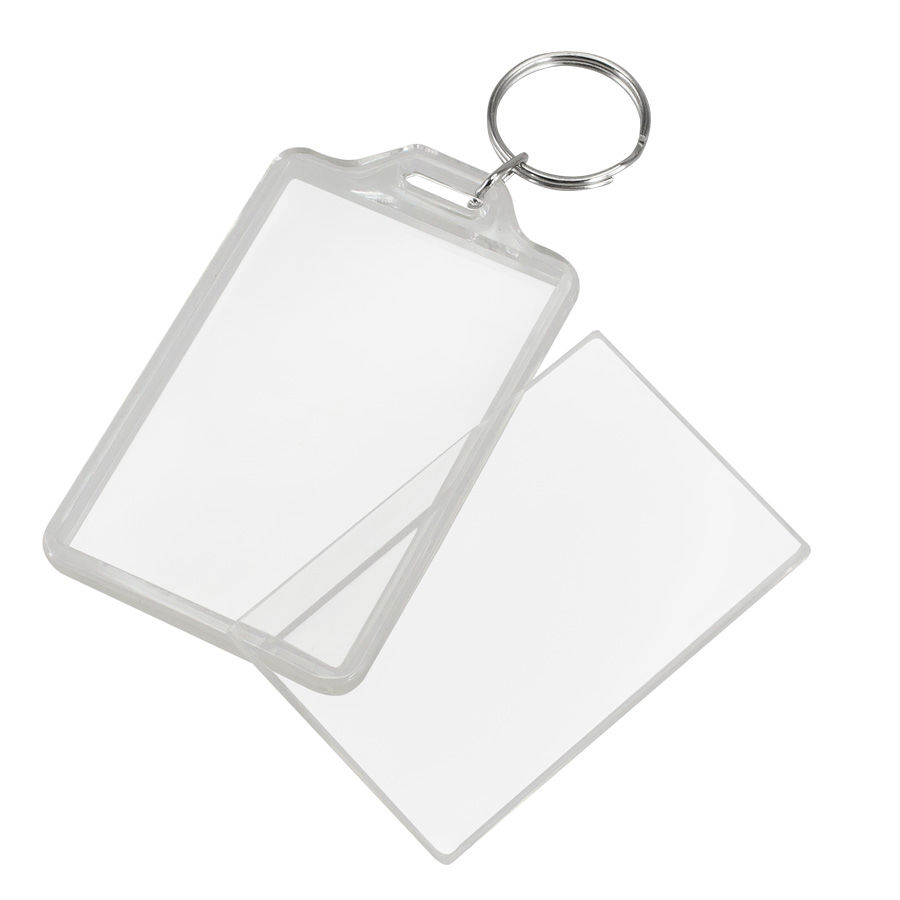 Llavero grande porta-foto de Acrílico transparente. Para insertar papel impreso en compartimento interior.