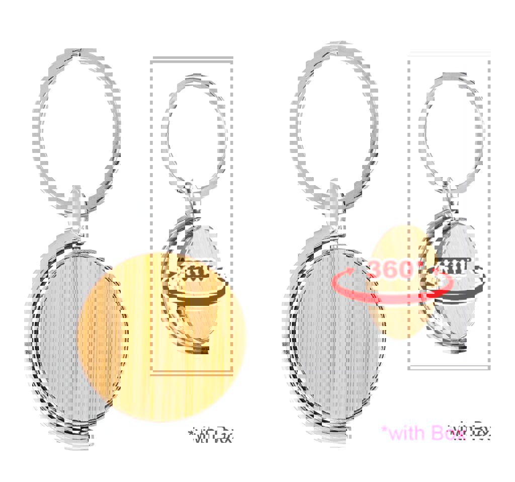 Llavero metálico con aplicación de bambú. Acabado brillante.