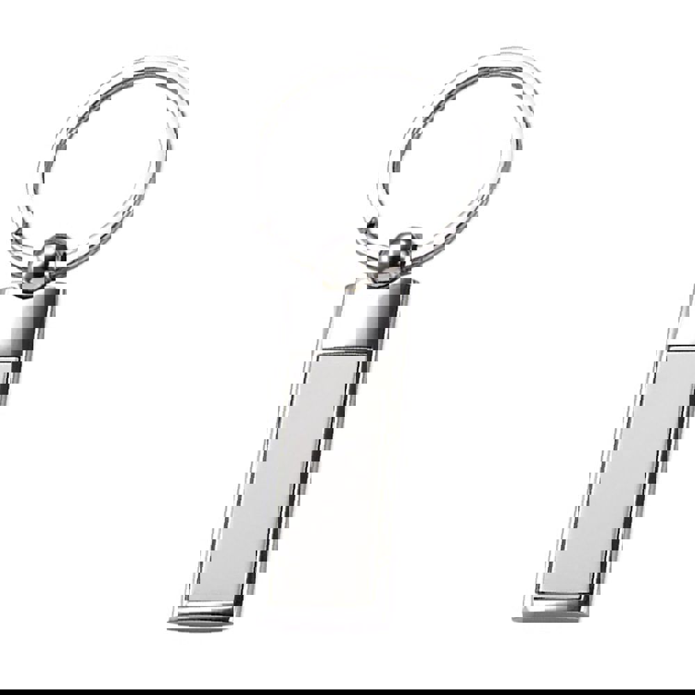 Llavero metálico. Acabado brillante. Presentación en estuche de cartón laminado color negro con cuna interior de terciopelo.