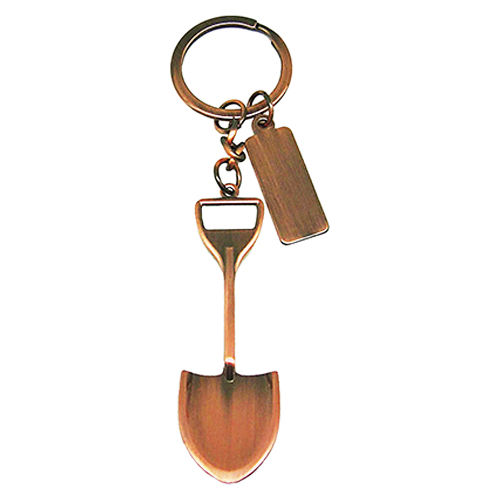 Llavero metálico encobrizado con forma de pala minera.