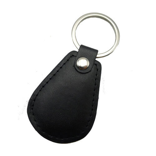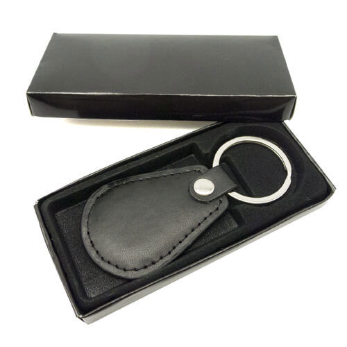 Llavero símil cuero color negro.