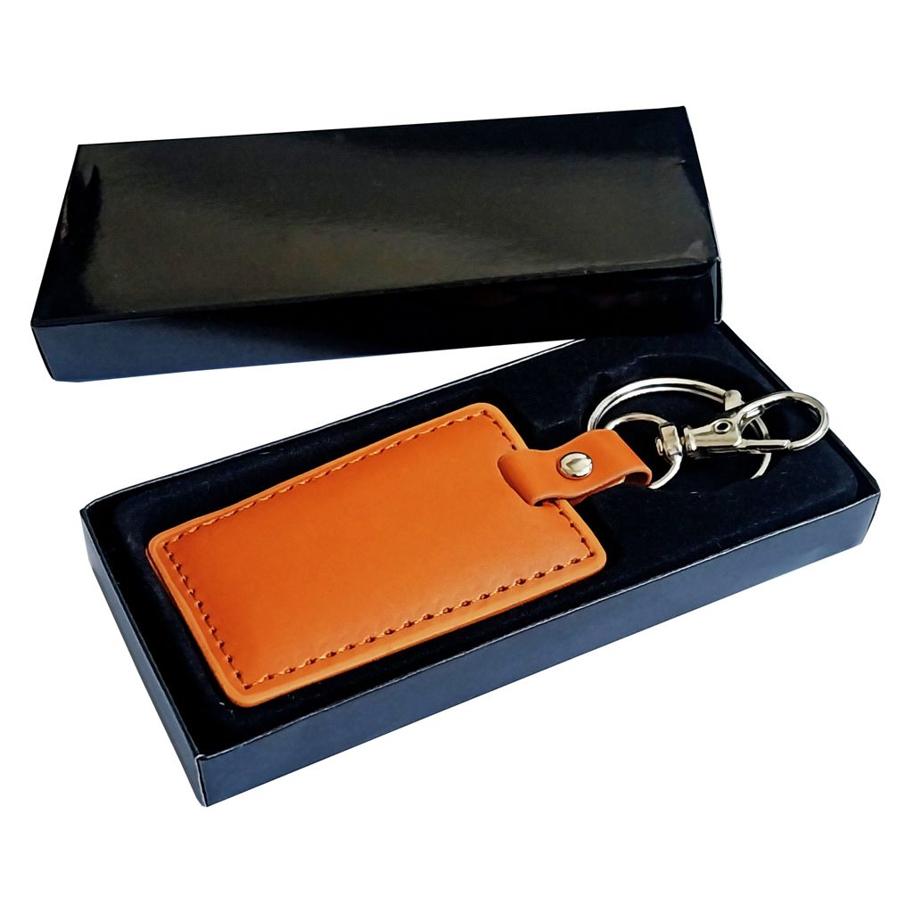 Llavero símil cuero color café.