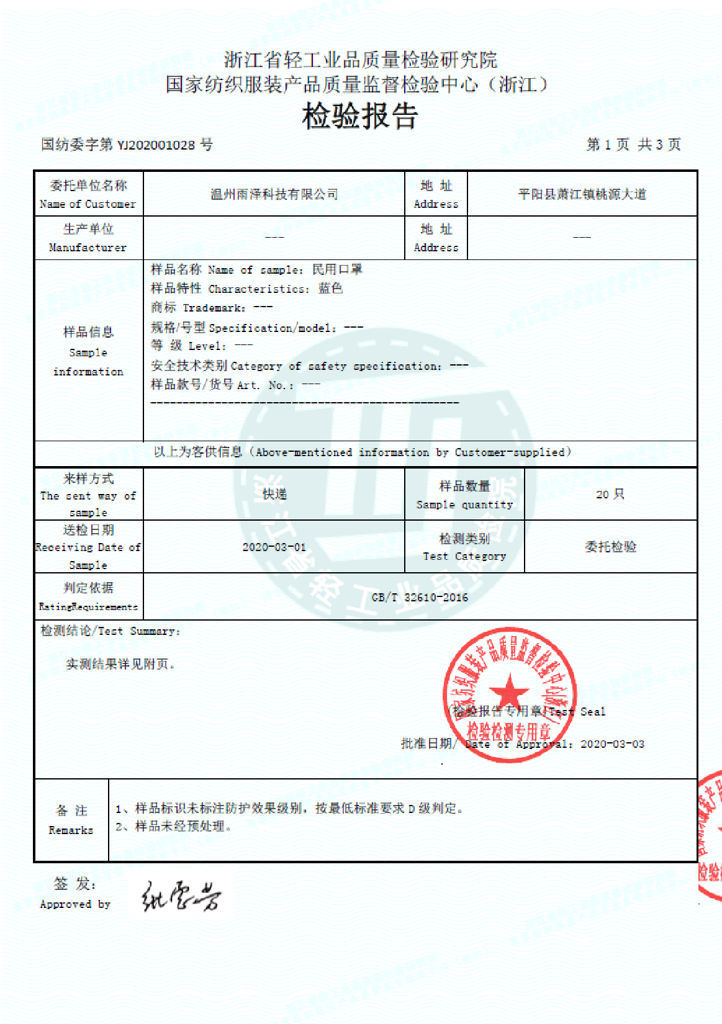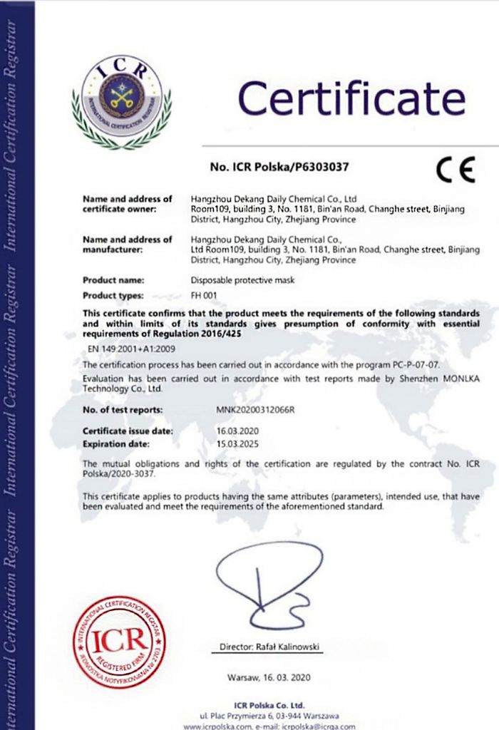 Standard: EN149:2001 +A 1:2009