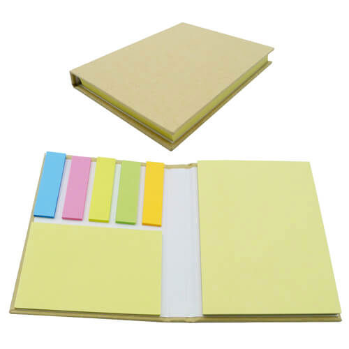 Memo set ecológico para oficina rectangular que incluye set de post-it y bloc de notas de distintos tamaños.
