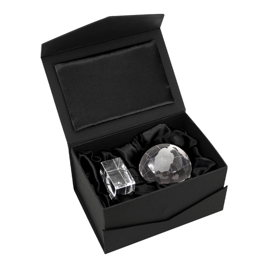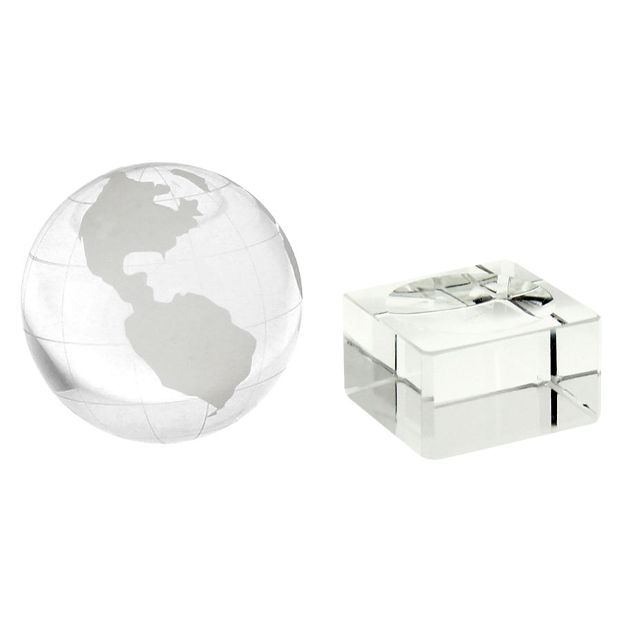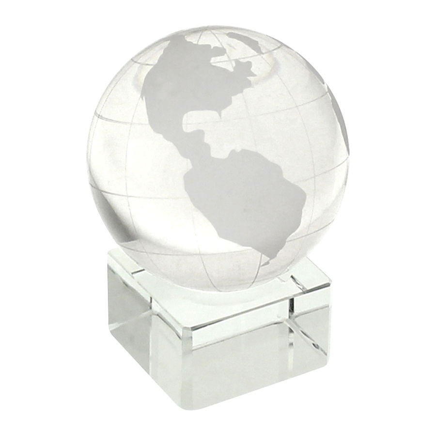 Mini Trofeo de Cristal modelo «World». Presentación en caja de cartón forrado negro.