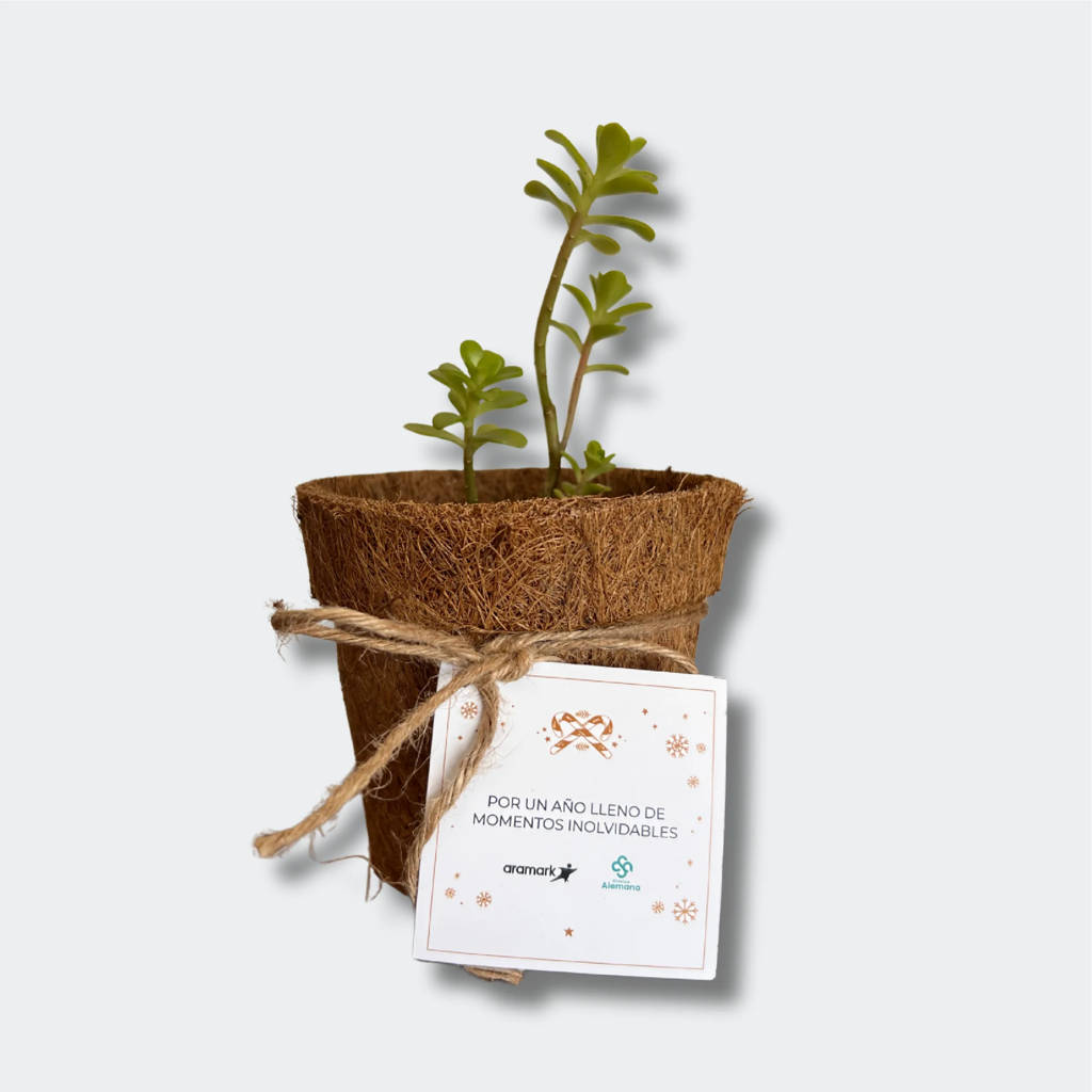 La tarjeta se puede imprimir a color con logo o diseño del cliente por una cara, convirtiendo la suculenta en un regalo corporativo, educativo o artesanal único 🌿.