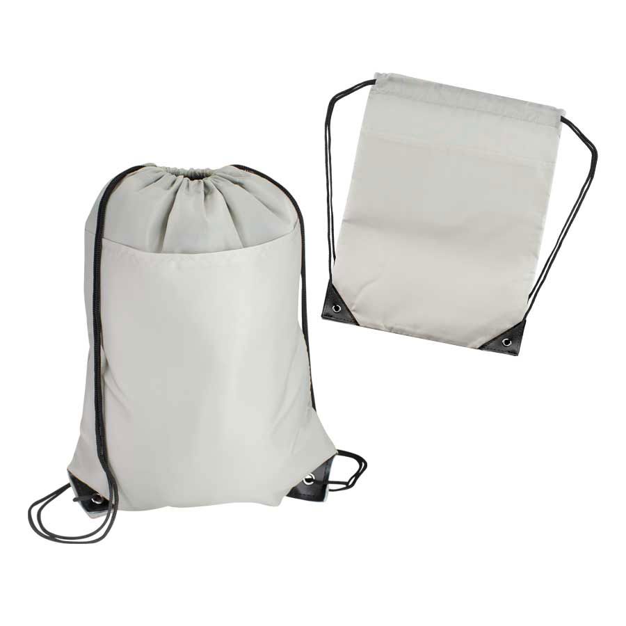 Mochila modelo «Cooler» de poliéster 210D/PU, interior tela aislante gris 12C PEVA, con relleno de esponja PE FOAM de 2mm. Ojetillos reforzados con PU negro. Bolsillo delantero exterior. Tiras de cordón negro.