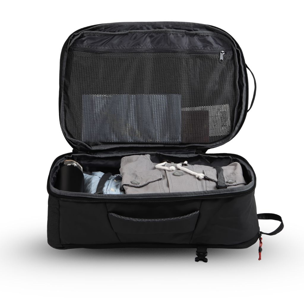 Con 38 Litros de capacidad y medidas para llevar en cabina, es todo lo que necesitas para tu viaje. Simplifícate y disfruta apenas aterrices.