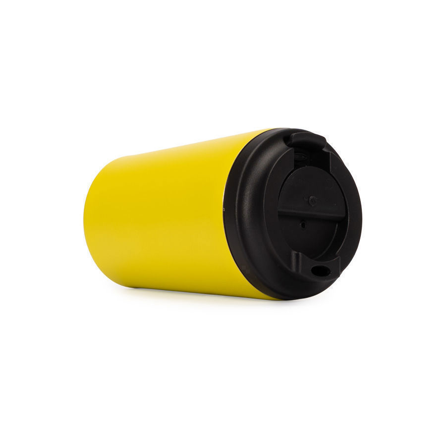 Mug térmico metálico «NORWAY» doble pared aislante, cubierta de Polipropileno (PP) acabado mate, interior Acero inoxidable 304 SS, exterior Acero inoxidable 201 SS. Capacidad 355ml. Incluye tapa rosca de polipropileno negro, con dosificador y argolla de silicona negra anti-derrame. En su parte inferior, cuenta con goma de silicona negra anti-deslizante. Producto BPA FREE, para el contacto con líquidos y alimentos. Ideal para café, té, bebidas frías o calientes. Tapado correctamente, aisla líquidos calientes o fríos por más de 12 horas. Presentación en plástico burbuja + caja de cartón laminado negro. PRECAUCIÓN: no usar en horno microondas ni llenar con bebidas gaseosas.