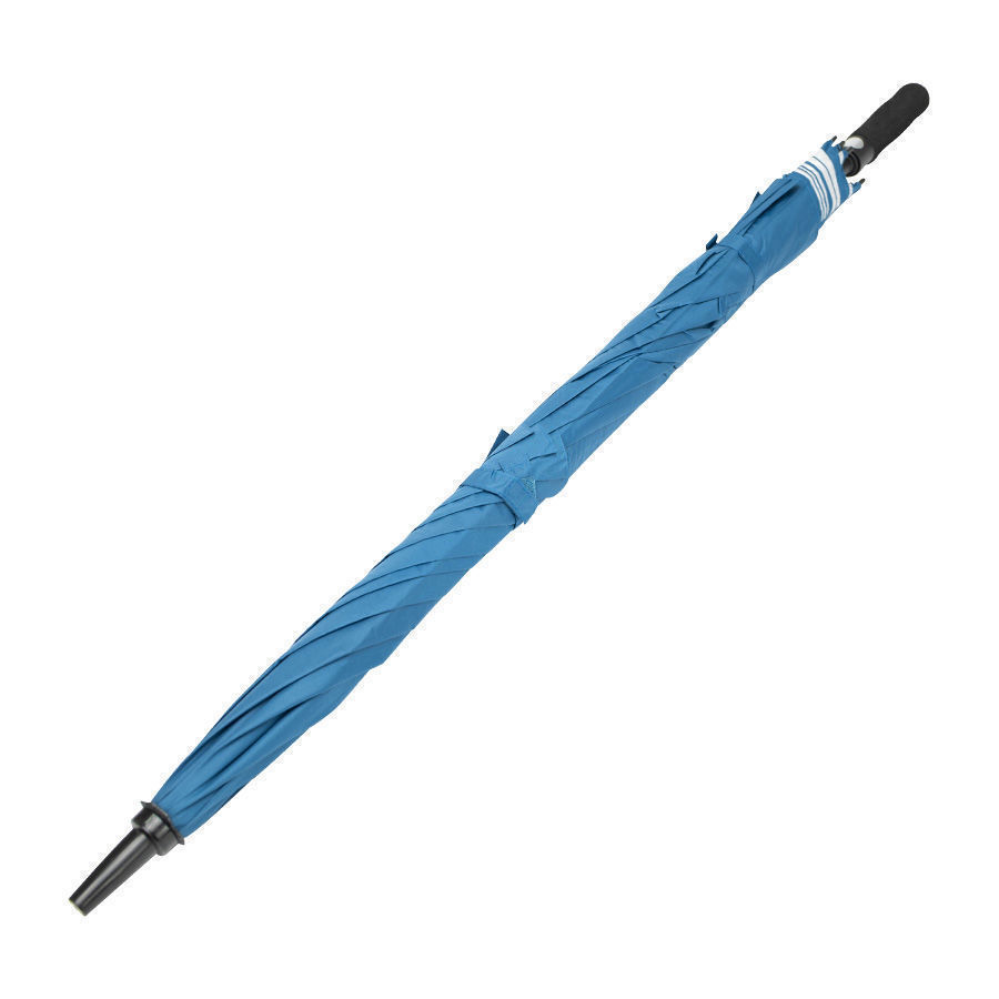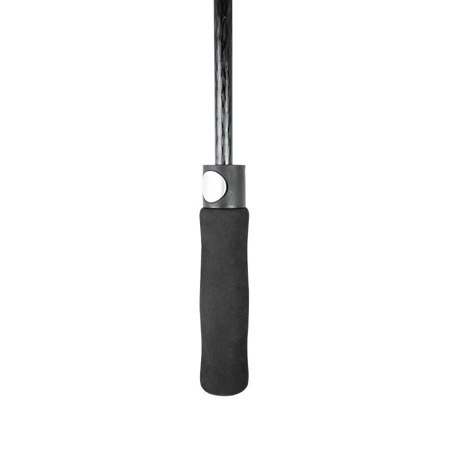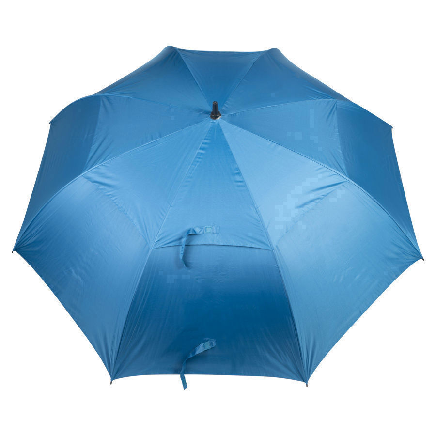 Paraguas gigante de Golf, con 8 cascos de tela 190T PONGEE, reverso UV. Incluye doble casco WINDPROOF (grande y pequeño), que evita el volcamiento ya que permite que el viento pase entre los cascos. Contiene varas reforzadas Anti-Vuelco de Fibra de Vidrio color negro y sistema de apertura automático. Mango recto de EVA negro. Incluye funda al tono de 190T PONGEE.